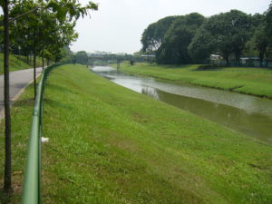 Sg Ulu Pandan in Singapore designed by me as a natural looking waterway with grassed berms and jogging tracks along its banks