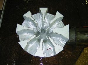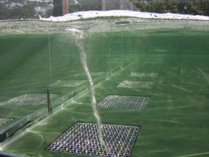 Studies carried out by me for the Nikilat Ship Repair Yard, Qatar. Picture shows air entraining vortices entering drainage channel at low water level during emptying of the dock.