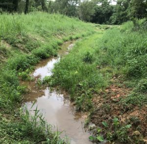 Natural looking compound Drain Design with Grassed Berms Gated Spillway